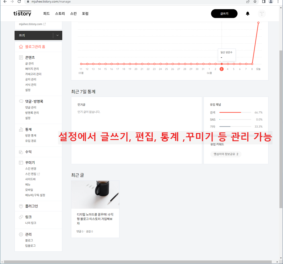 저 역시 검색을 통해 먼저 티스토리라는 곳을 알게 되어 시작해보려고 합니다.