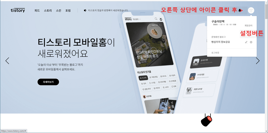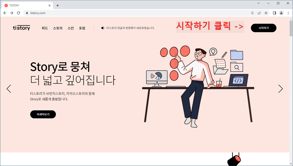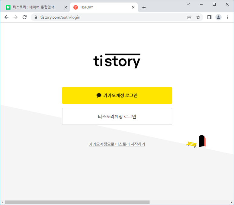 1, 주소창에 www.tistory.com 입력 또는 네이버에 티스토리 검색