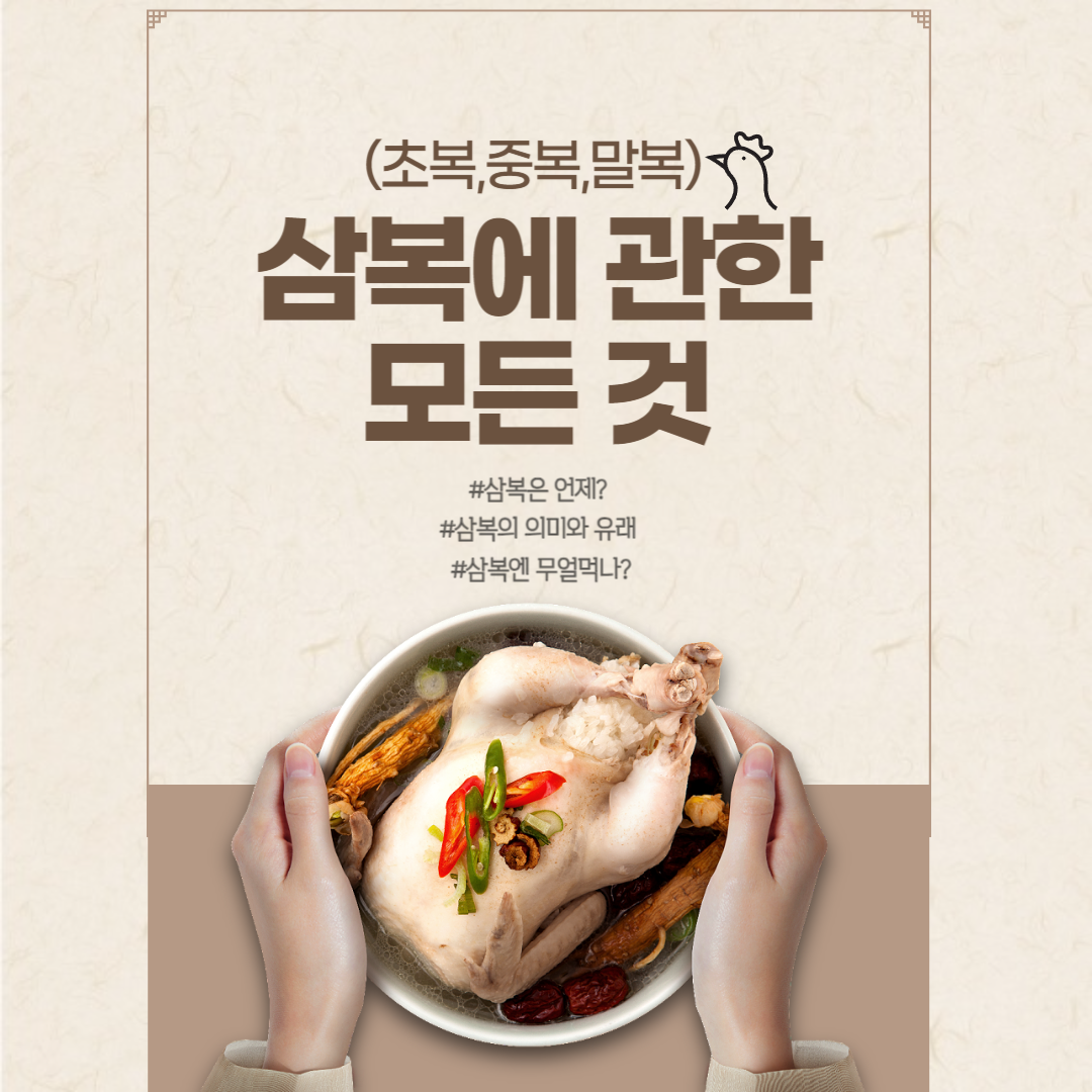 삼복은 음력 7월 중순부터 8월 중순까지 30일 동안의 기간으로, 가장 무더운 여름철을 가리킵니다.