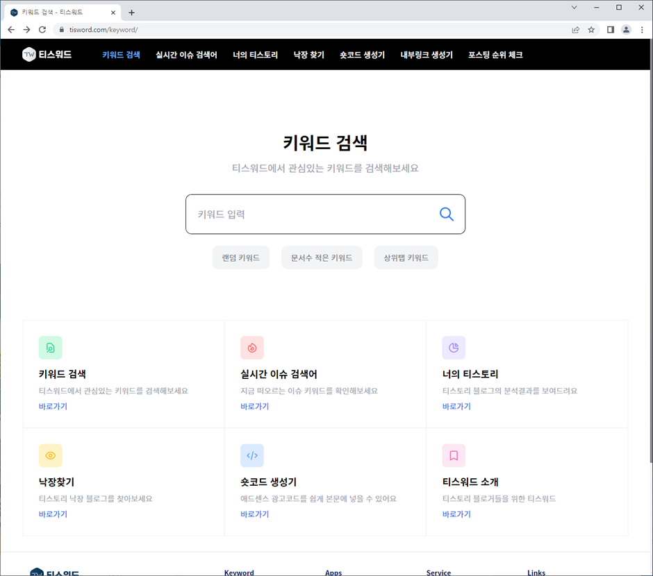 블로거와 마케터를 위한 웹사이트 티스워드에서 관심있는 키워드를 검색해보세요