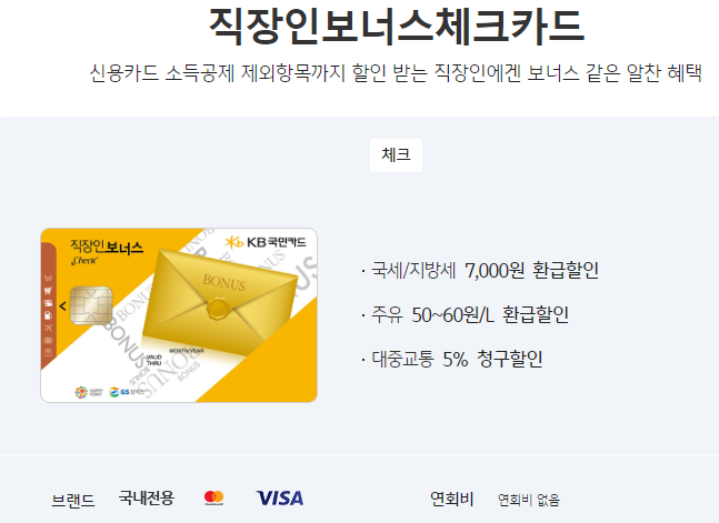 - 보험료할인, 통신요금할인, 버스지하철 요금할인, 주유할인 등이 있습니다.