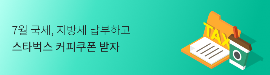 - 국세, 지방세 50만원 이상 결제하고 ‘응모하기’ 누르면 스타벅스 아메리카노(TALL) 2잔 커피쿠폰 증정