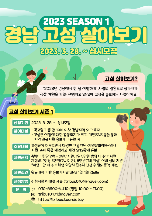 - 경남지역 외 거주자만 가능하며 만 19세 이상 SNS 포스팅 가능한 자 지원가능