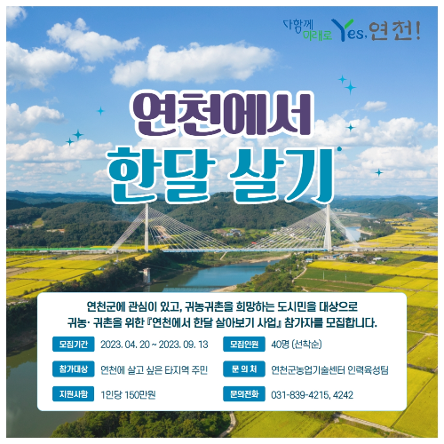 - 연천군에 1개월 체류하면서 농업, 관광, 지역문화 등 체험