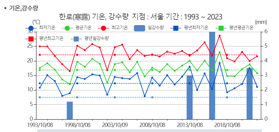 - 한로는 밤이 길어지고, 아침과 저녁에 서리가 내리는 시기로, 이때부터는 겨울이 다가오기 시작합니다.