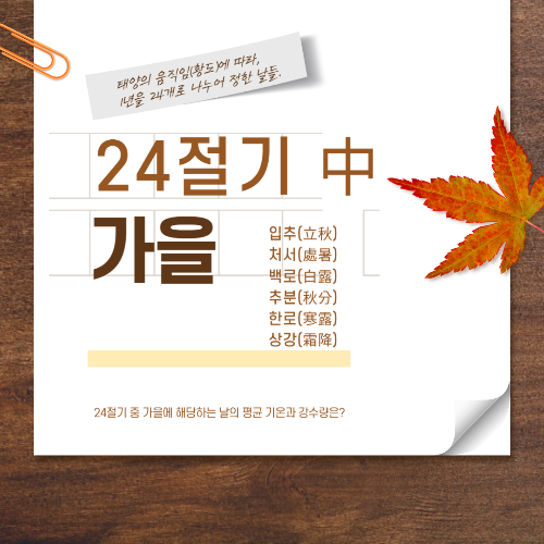 오늘은 24 절기 중 가을에 관해 정리해 보았습니다.